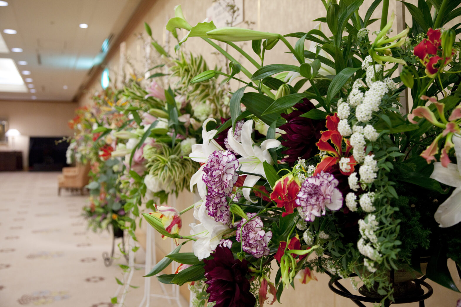 多くは屋外に設置されることが多いため、風に飛ばされないよう生花のみで構成されたフラワースタンドがおすすめです。
