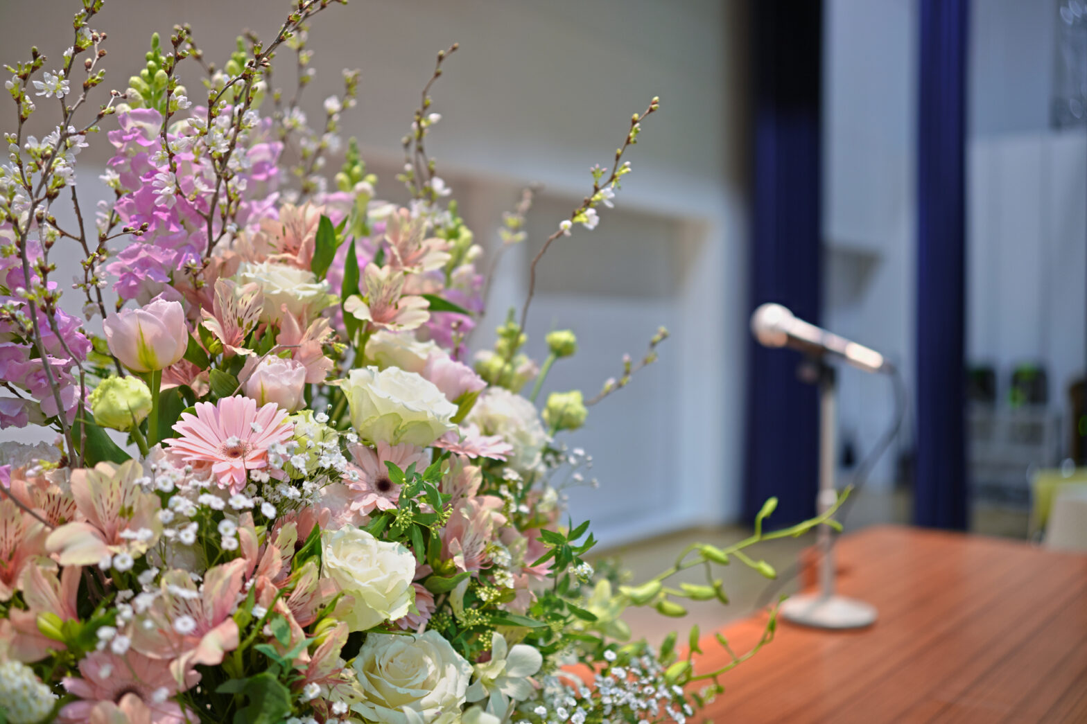 送別会や式典において相手へ花束を渡す際は、プログラムの終盤か花束を渡すタイミングで渡しましょう。