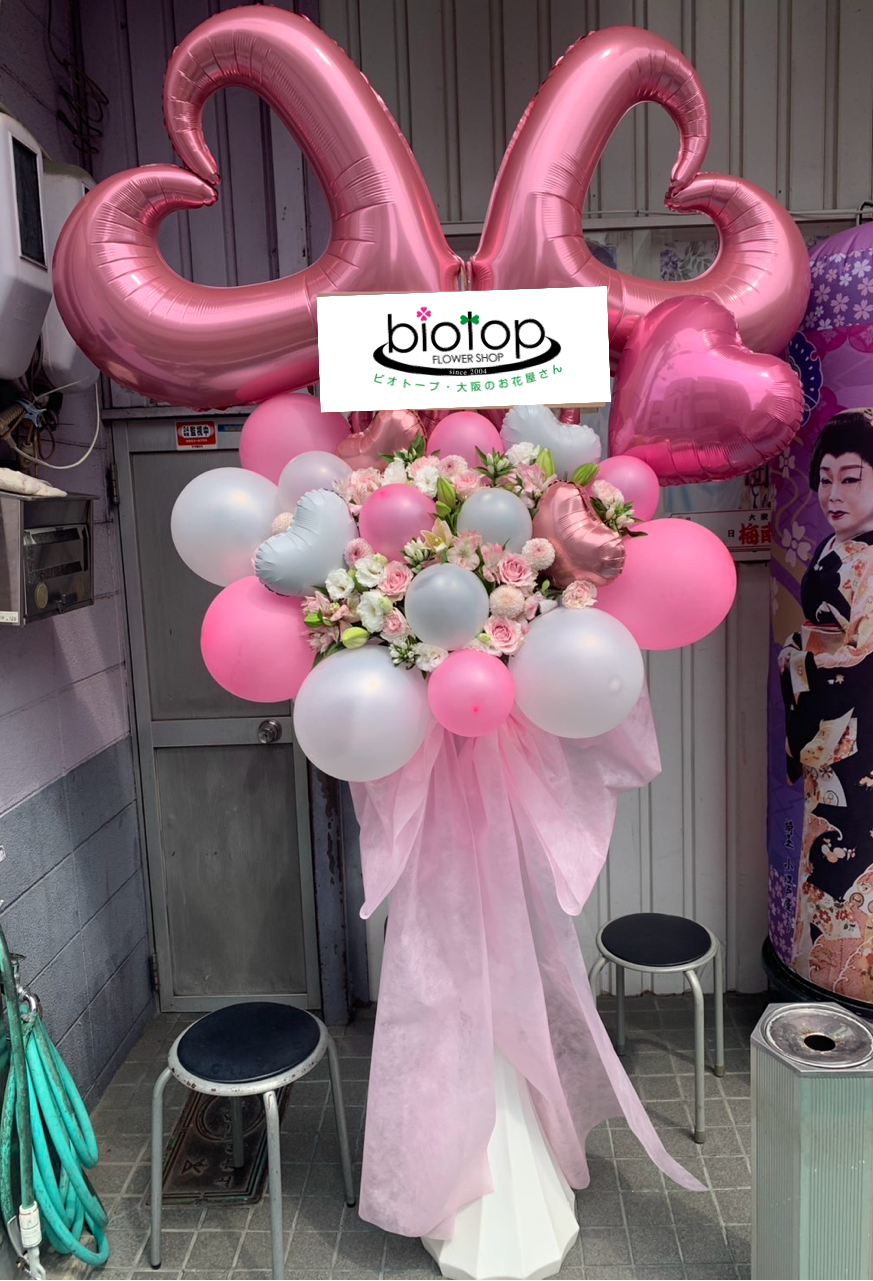 カワイイハートのバルーンとお花を使用してリボンも付けて
